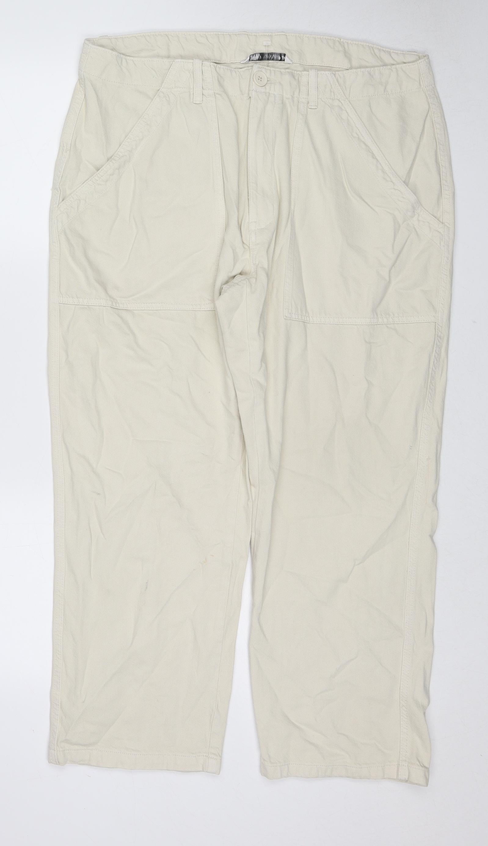 Zara Womens Ivory Cotton Straight Jeans Size 2XL L25 in Regular Zip