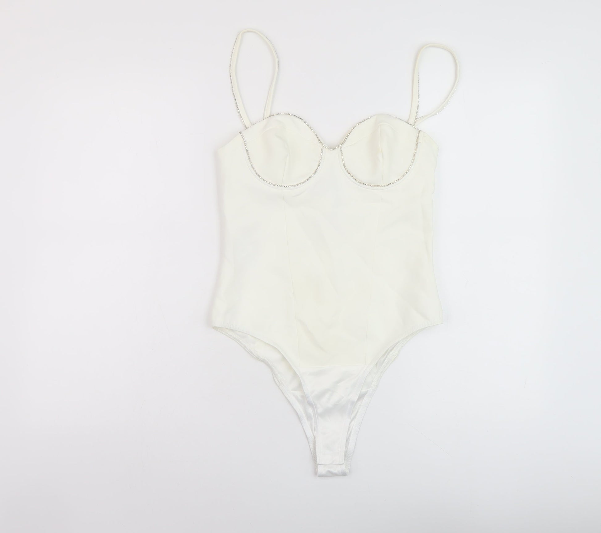Zara Womens Ivory Polyester Bodysuit One-Piece Size M Snap