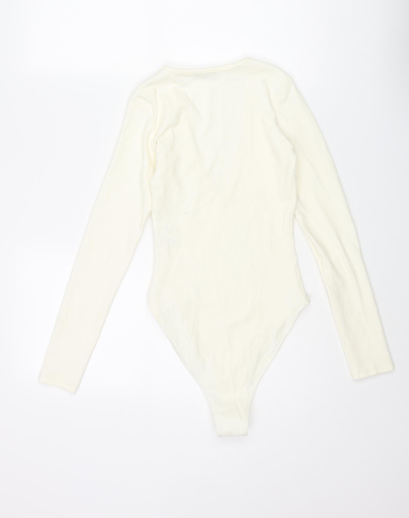 Zara Womens Ivory Polyester Bodysuit One-Piece Size S Snap - Ribbed