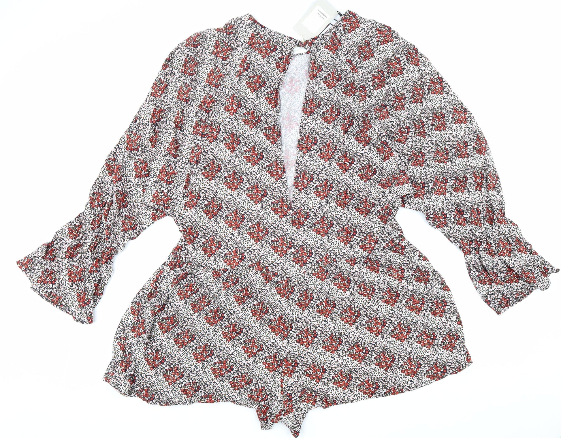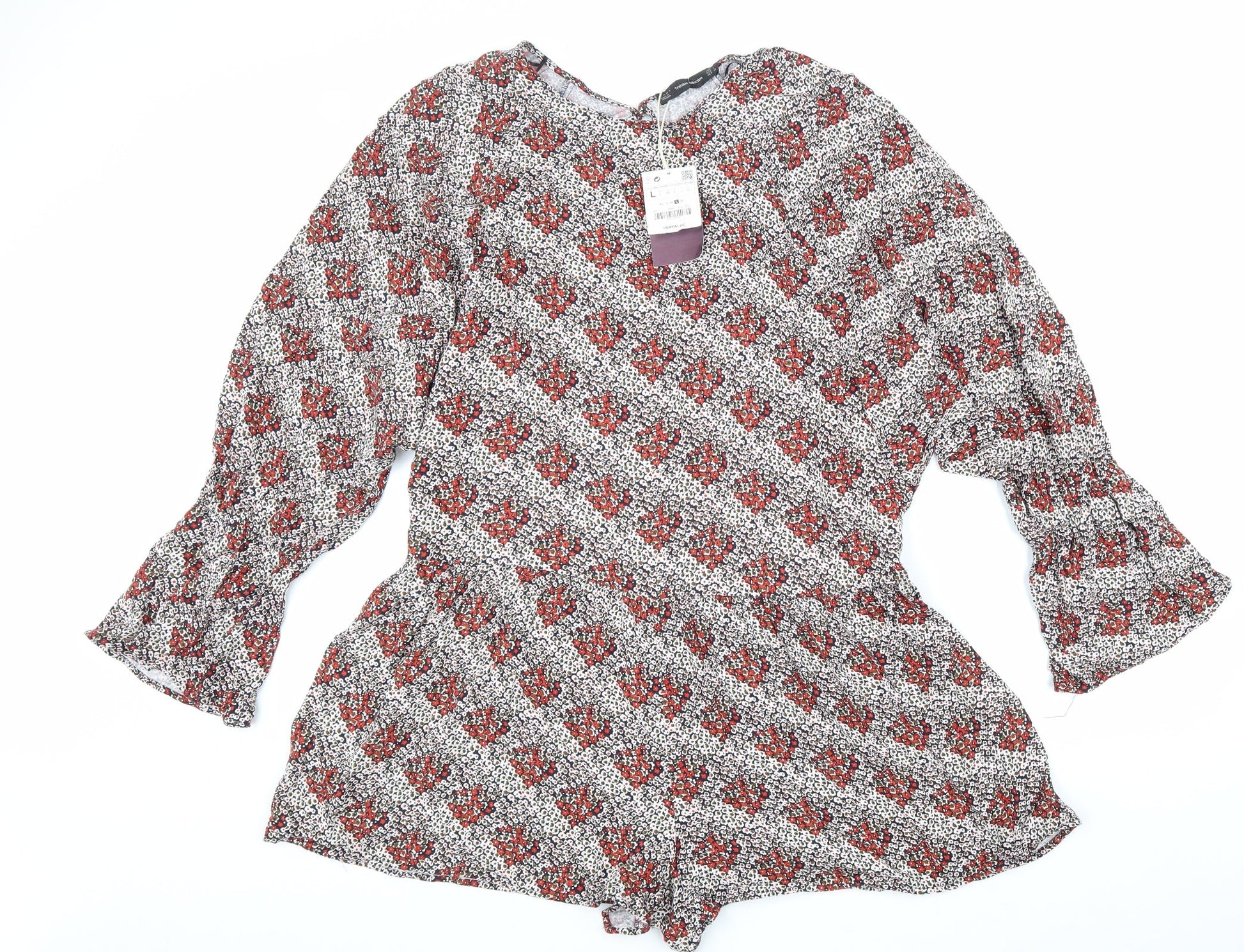 Zara Womens Multicoloured Geometric Viscose Playsuit One-Piece Size L Button