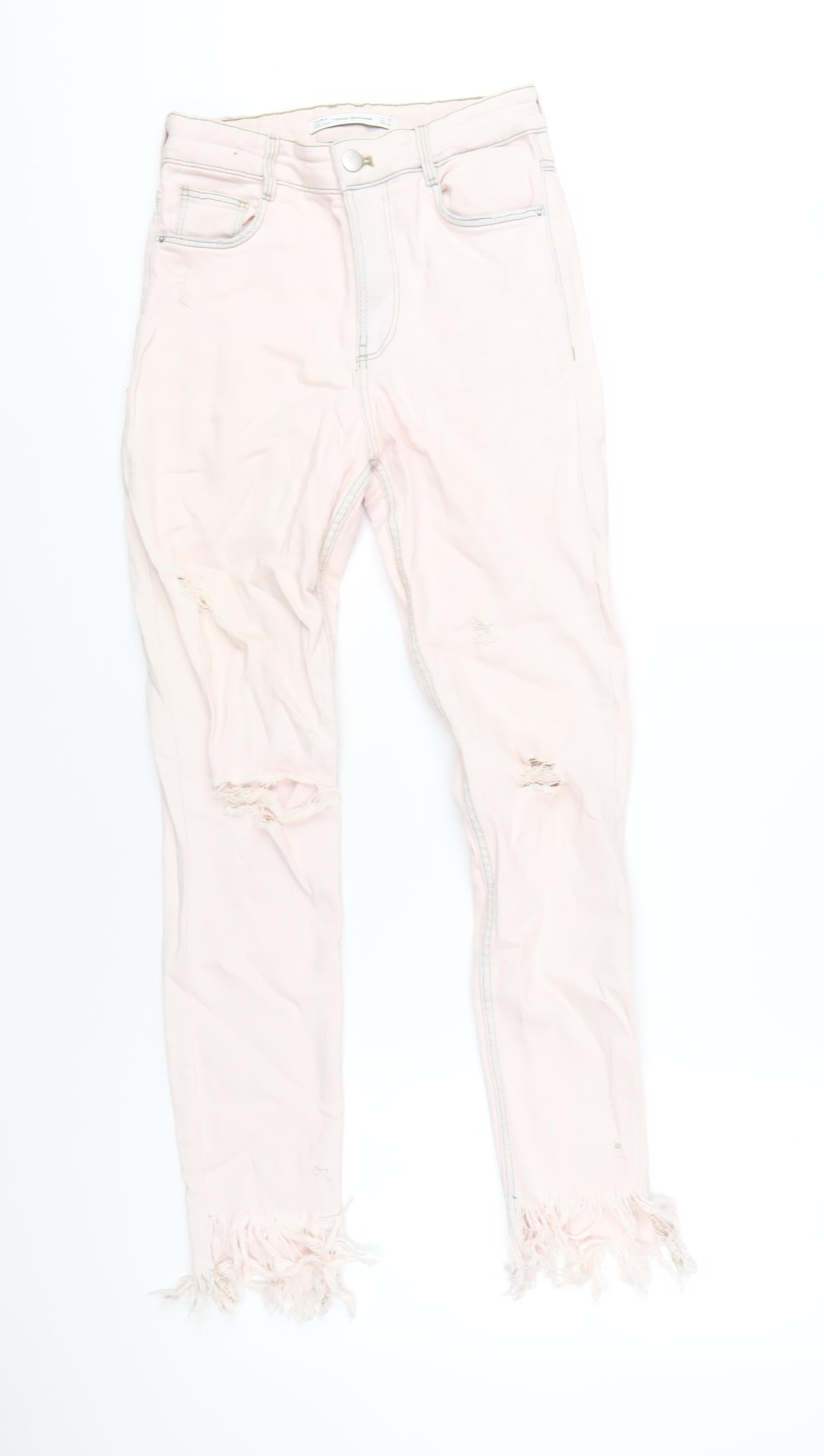 Zara Womens Pink Cotton Skinny Jeans Size 8 L28 in Regular Zip