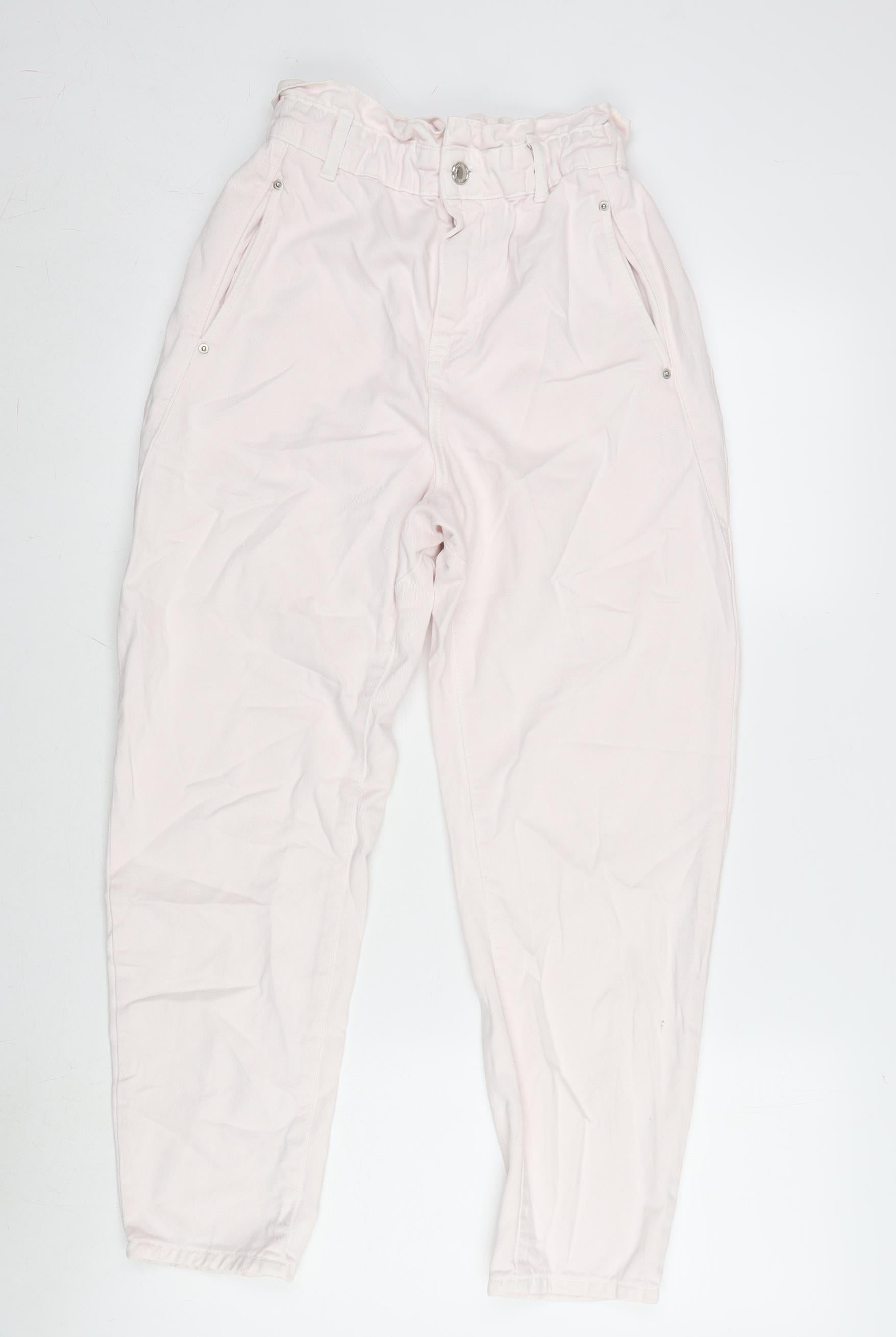 Zara Womens Pink Cotton Tapered Jeans Size 6 L25 in Regular Zip