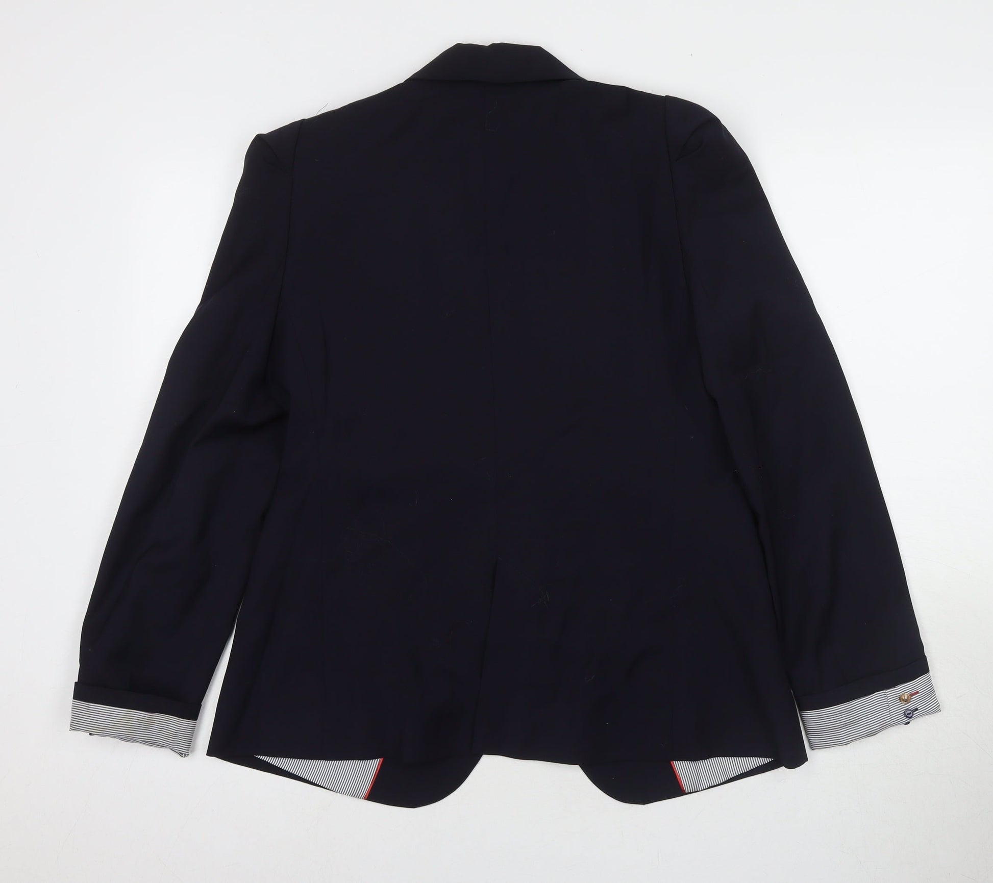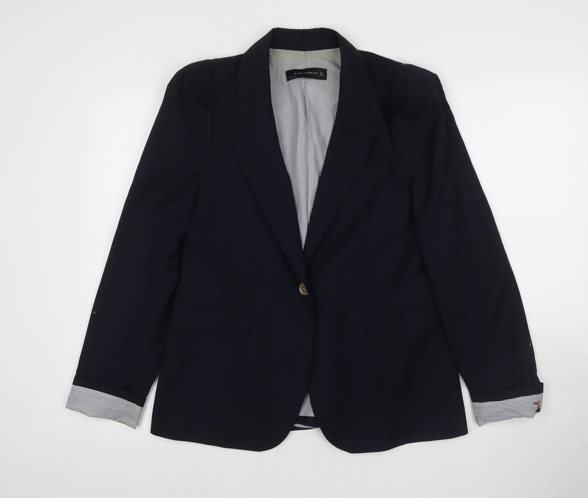 Zara Women's Pinstripe Black Blazer L, Wool, Notch Lapel