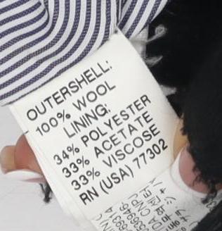 - Material Breakdown: 100% Wool 34% Polyester 33% Viscose 33% Acetate