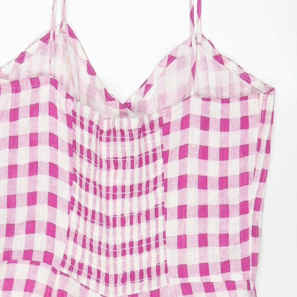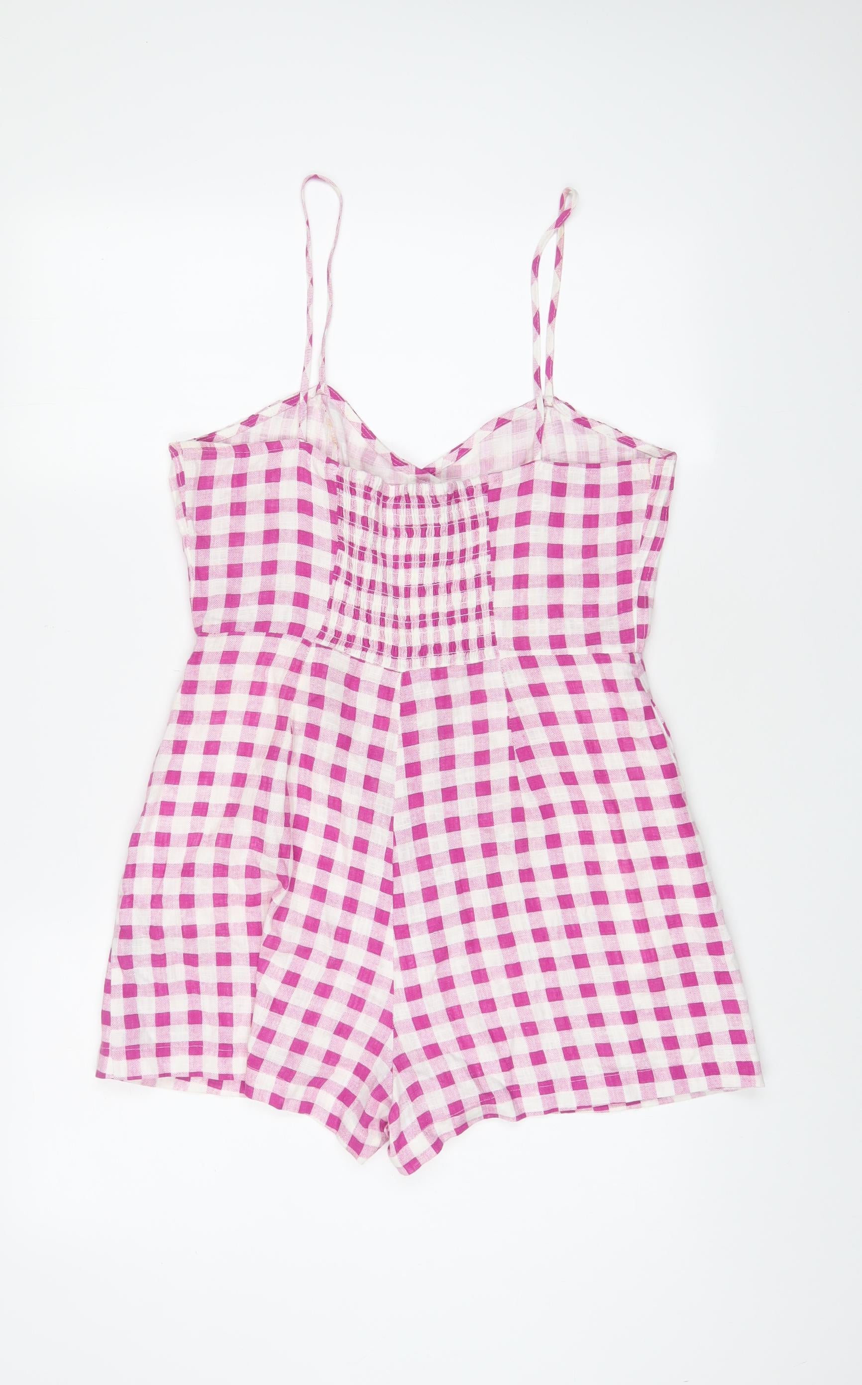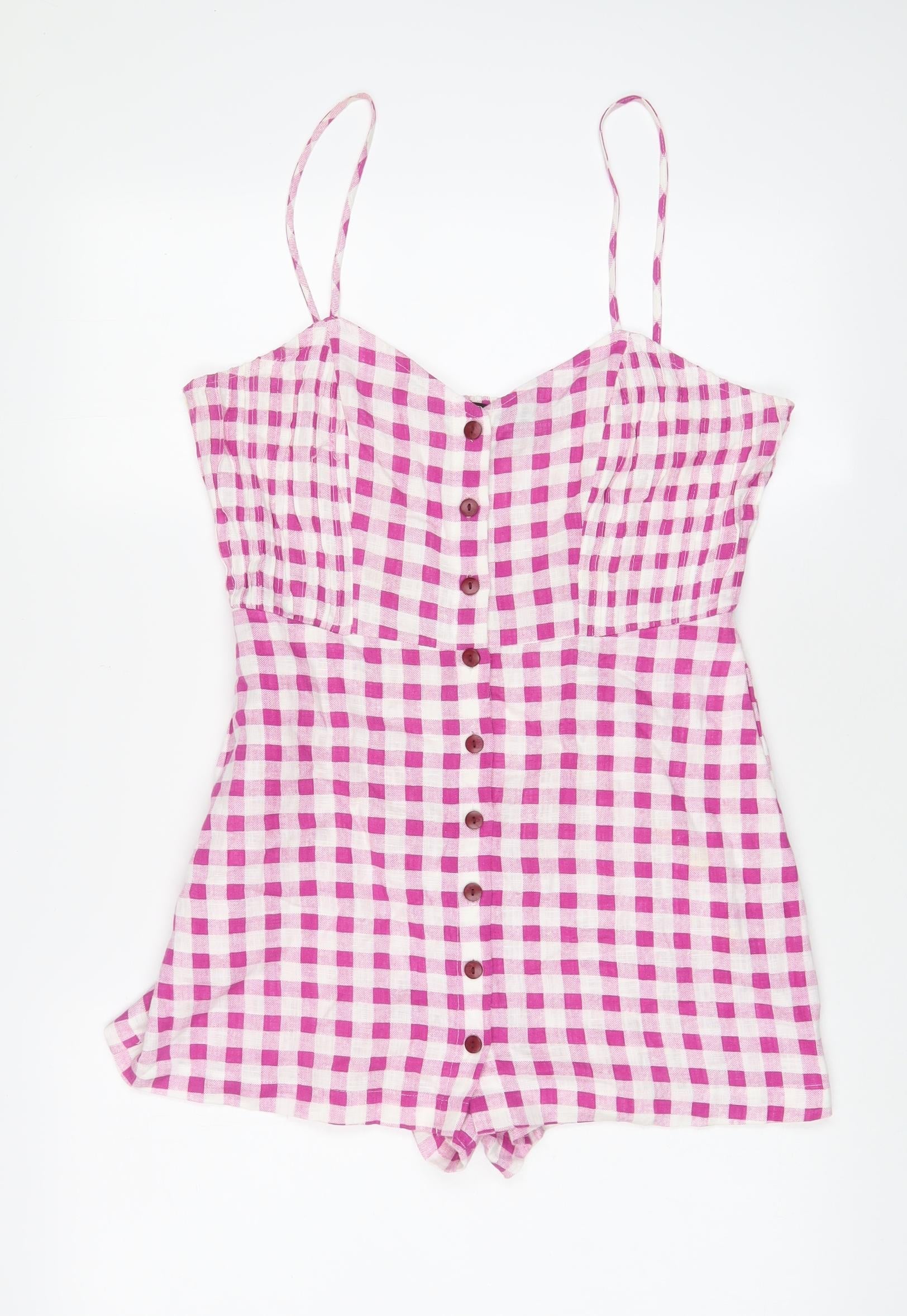 Zara Womens Purple Plaid Linen Playsuit One-Piece Size M Button - Pleated