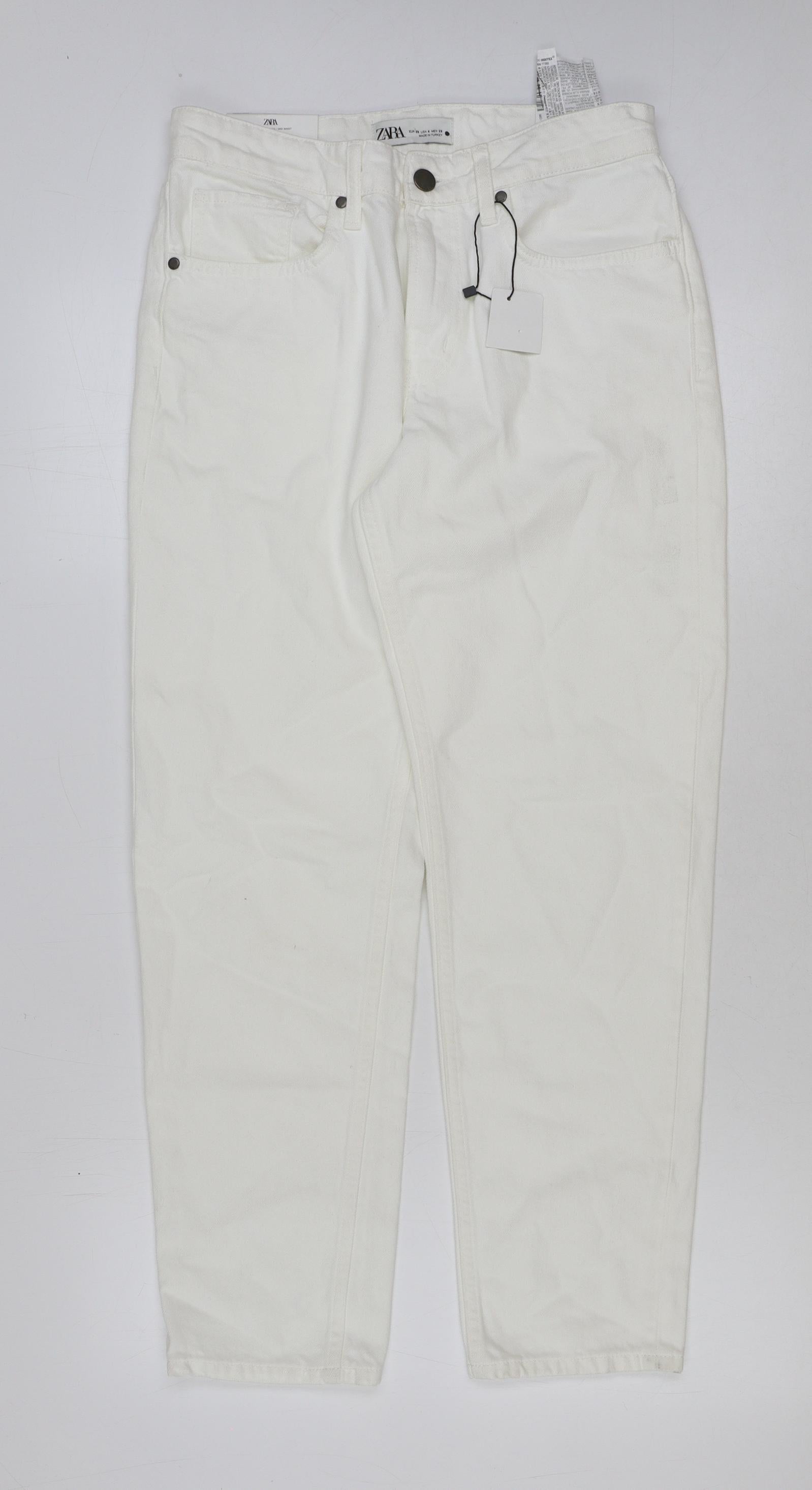 Zara Womens White Cotton Mom Jeans Size 8 L28 in Regular Button