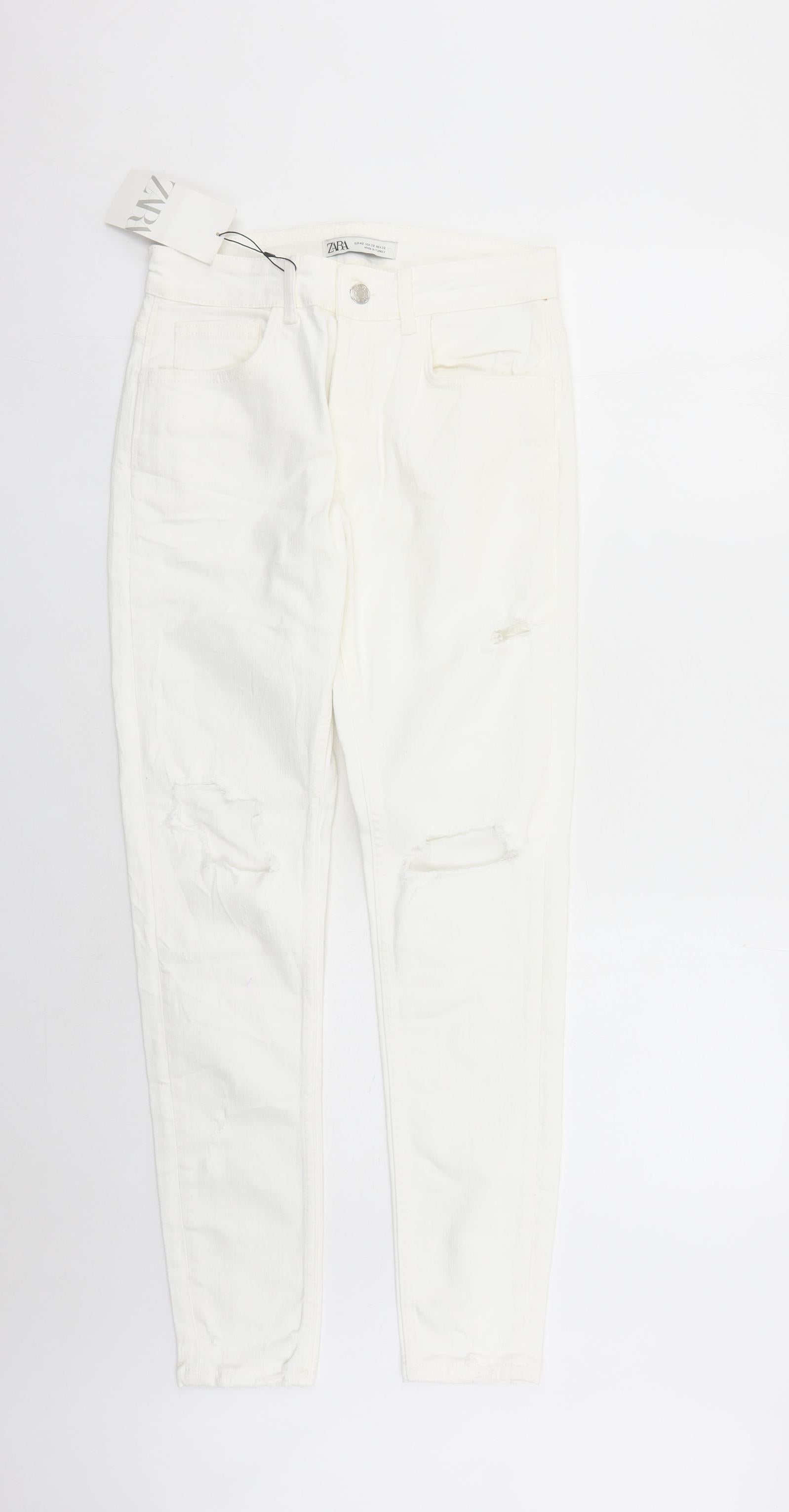 Zara Womens White Cotton Skinny Jeans Size 28 in L30 in Regular Zip