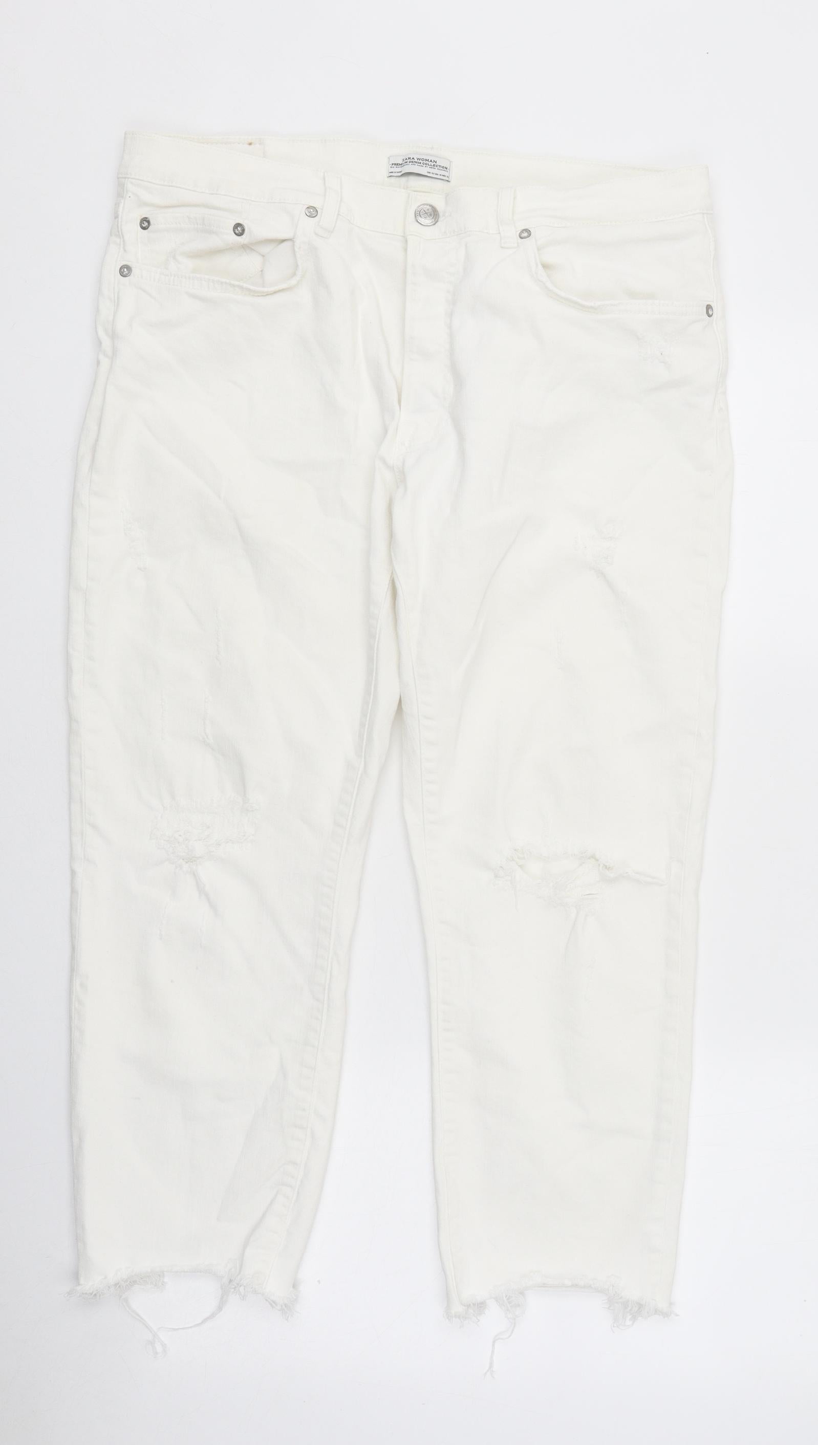 Zara Womens White Cotton Straight Jeans Size 38 in L28 in Regular Zip