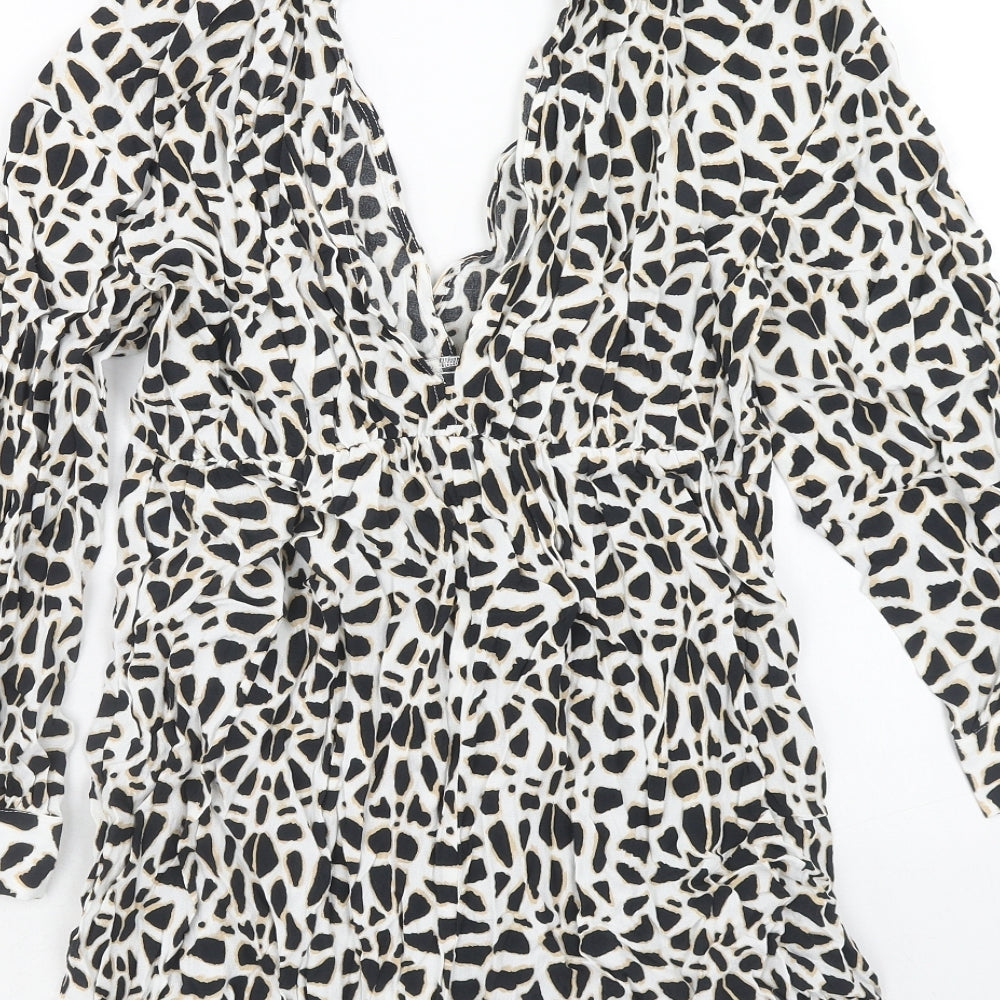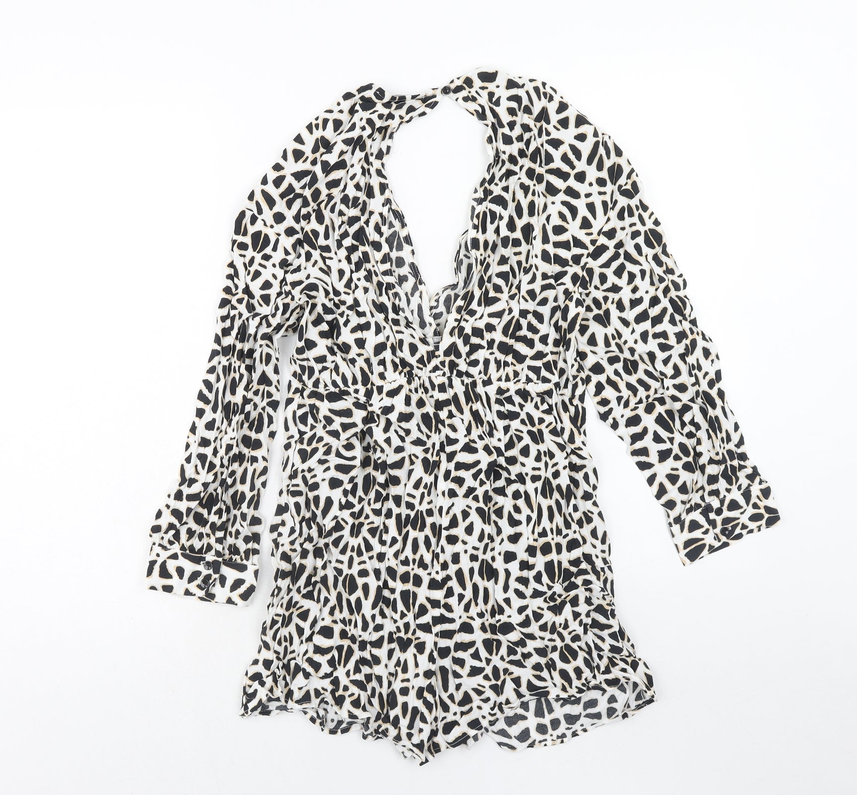 Zara Womens White Geometric Viscose Playsuit One-Piece Size S Button