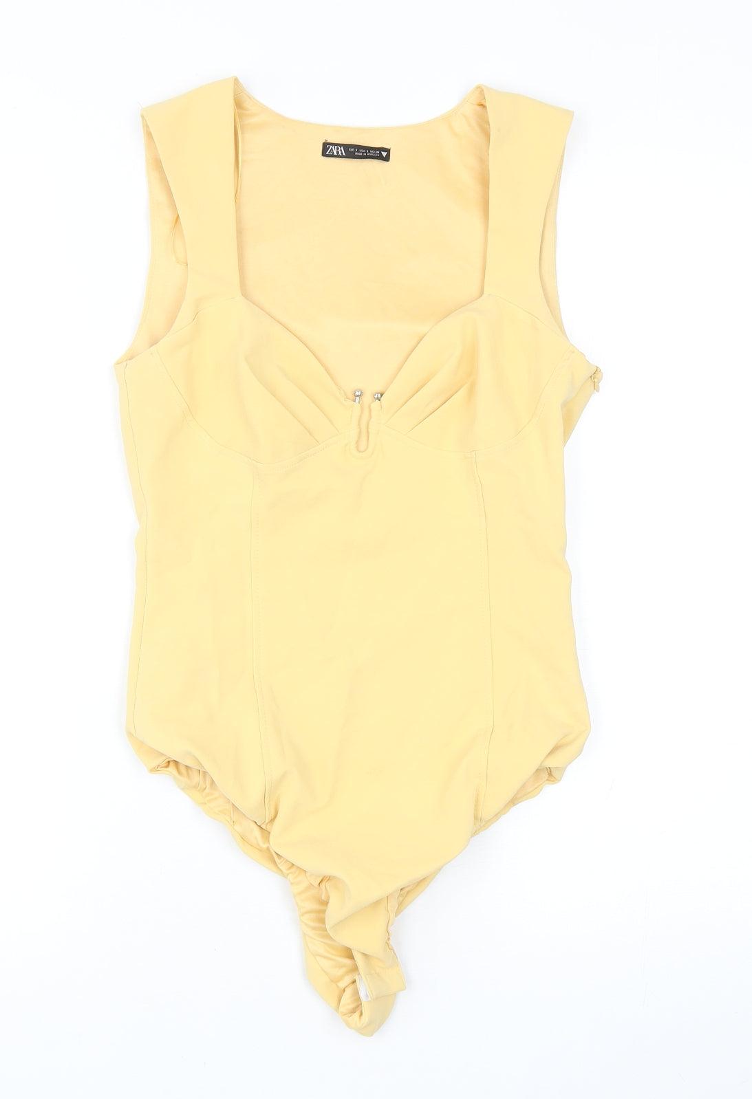 Zara Womens Yellow Polyester Bodysuit One-Piece Size S Snap