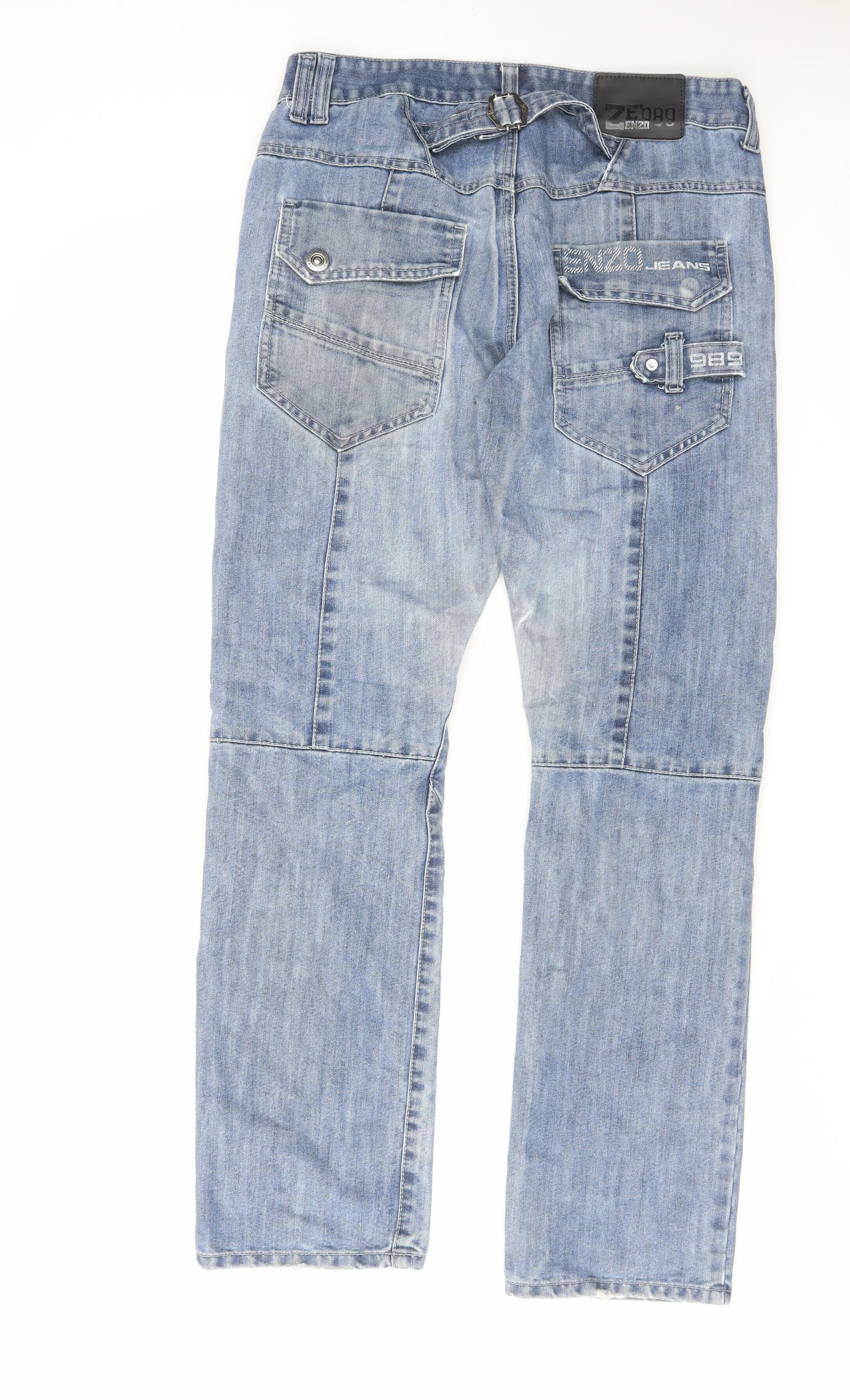 Ze Enzo Mens Blue Cotton Straight Jeans Size 32 in L31 in Regular Zip